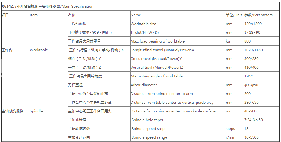 X6142******升降臺銑床是一種用途廣泛的通用機(jī)床,適宜于棒形、圓片、成形和端面銑刀,進(jìn)行平面、溝槽和邊緣的加工。在本機(jī)床上安裝分度頭等附件后,還能銑切齒輪、鉸刀、螺旋槽、凸輪和鼓輪等工件,廣泛應(yīng)用于機(jī)械加工各行業(yè)。