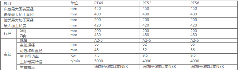 PT46/52/56DW 刀塔式尾座式數(shù)控車床參數(shù)