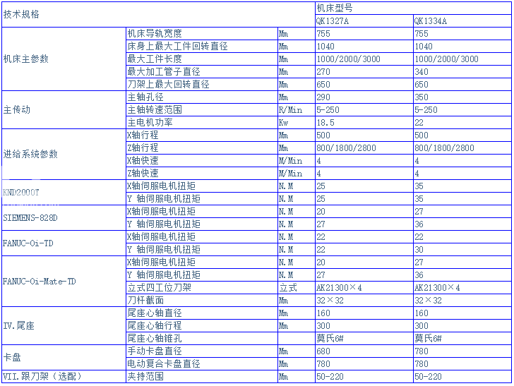 QK1327A,QK1334A機床為臥式平床身數(shù)控管螺紋車床,采用半閉環(huán)控制。車削主傳動為無級變速,兩個聯(lián)動控制軸,Z軸和X軸采用滾珠絲杠副加交流伺服電機實現(xiàn)縱向和橫向移動,具有很好的定位精度和重復(fù)定位精度。