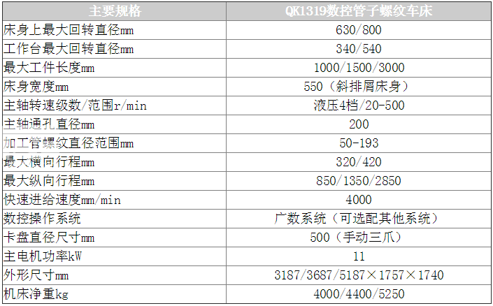 QK1319型數(shù)控管螺紋車床是針對(duì)石油、化工、冶金行業(yè)輸油管、鉆桿、套管的螺紋加工要求專業(yè)化設(shè)計(jì)制造的新型數(shù)控機(jī)床。機(jī)床采用雙卡盤夾緊工件、液壓換擋、數(shù)控系統(tǒng)自動(dòng)控制,可******加工各種內(nèi)、外螺紋,并具有普通數(shù)控車床的功能。