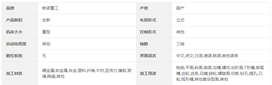 新諾精工產(chǎn)品系列:立式升降臺(tái)銑床|臥式升降臺(tái)銑床|萬(wàn)能升降臺(tái)銑床|萬(wàn)能回轉(zhuǎn)頭銑床|數(shù)控銑床|端面銑床|立式加工中心|臥式加工中心|龍門(mén)加工中心|