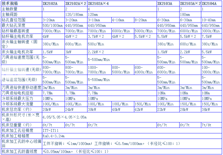 本機床是一種高效、高精度、高自動化的專用深孔鉆床,采用外排屑鉆削法(槍鉆法),通過一次連續(xù)鉆削即可代替一般需要鉆、擴、鉸工序才能達到的加工精度和表面粗糙度。本機床采用數字控制系統(tǒng)控制,不但有單動功能,它還具有自動循環(huán)的功能。為了提高加工效率,本機型還配有2個或4個動力頭結構。因此,它能適合于小批量的加工,特別適合于大批量生產的加工要求。機床可以鉆削通孔、盲孔、階梯孔,配合專用工裝時也可加工偏心孔及斜油孔。