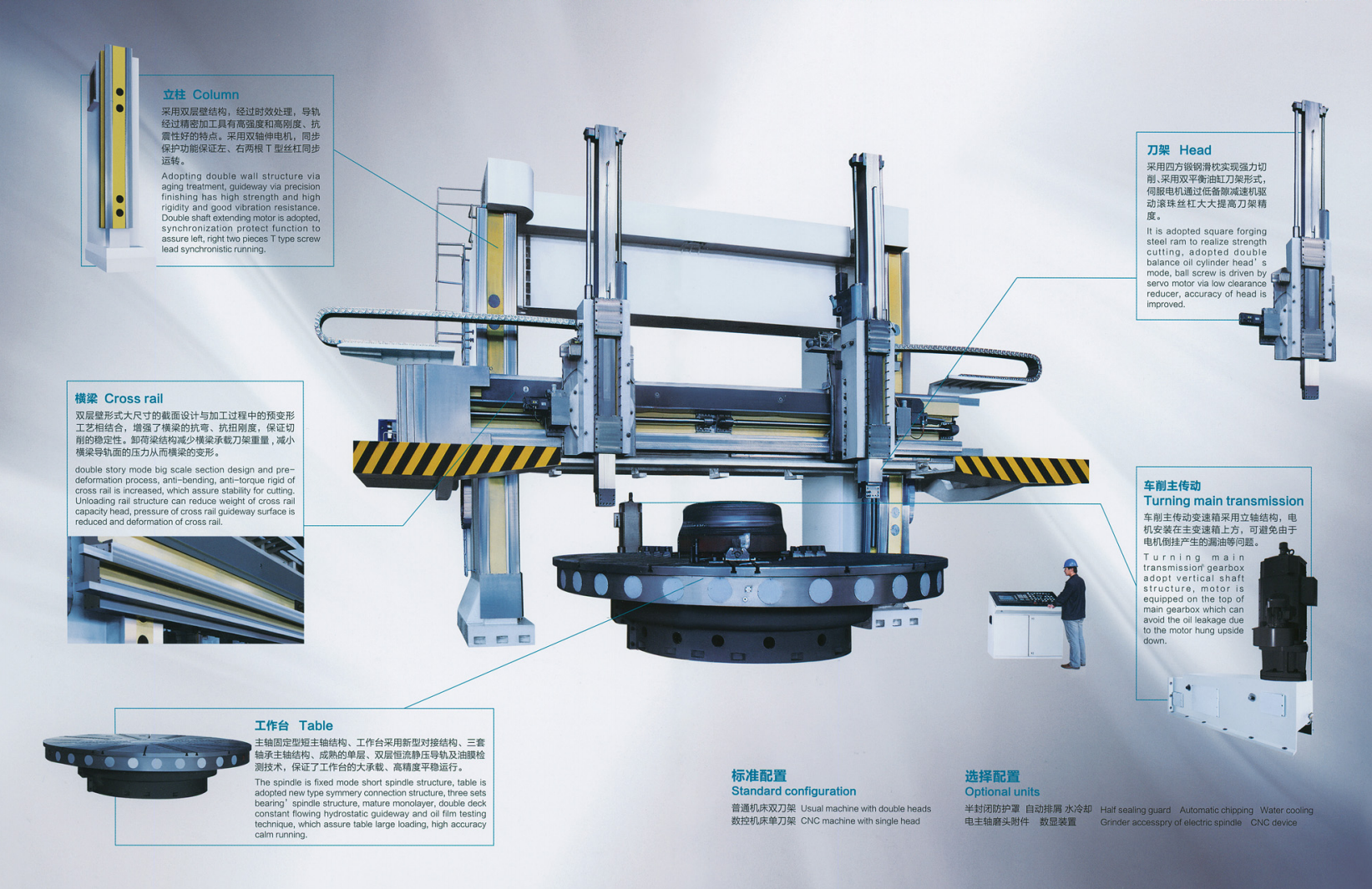 ●工作臺軸向采用靜壓導(dǎo)軌,徑向采用雙列圓柱滾子軸承,液壓系統(tǒng)配備油冷機(jī),控制各部溫升,得到穩(wěn)定精度。